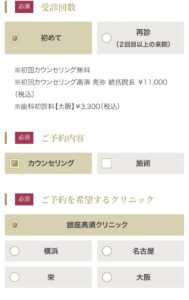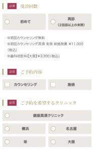 ご予約内容→カウンセリングにチェックを入れご希望の店舗を選択します。