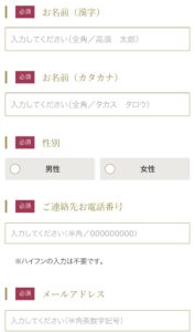 ③名前(フリガナ)・性別・電話番号・メールアドレスなど必須項目を入力します。