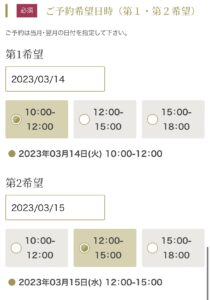 ⑤ご希望の日時を選択します。