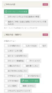 ⑤ご予約内容→カウンセリングのみ希望、ご相談内容→医療レーザー脱毛にチェックを入れます。