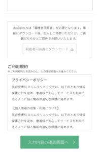 ⑦ご利用規約を確認し「入力内容の確認画面へ」のボタンをタップしてください。