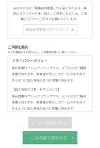 ⑧入力内容に相違がないか確認をし、「この内容で送信する」のボタンをタップすると無料カウンセリングの予約が完了です。