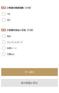 ⑤ご希望プラン・ご希望の回数・ご希望の支払い方法を選択して「次へ進む」のボタンをタップしてください。