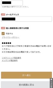 ⑥名前・生年月日・電話番号などを入力とプライバシーポリシーの内容を確認後、同意するにチェックを入れて「次へ進む」のボタンをタップしてください。